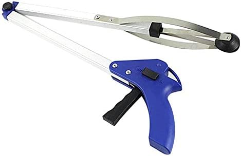 Reacher Grabber Tool pieghevole pickup strumento leggero in alluminio con pinza rotante in gomma lungo braccio Extender per anziani lettiera raccoglitore giardino Nabber blu