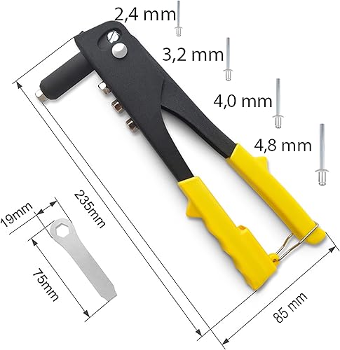 Pinze per rivetti ciechi con rivetti, pinze rivetti con manico ergonomico per rivetti ciechi in acciaio, pinze per rivetti a mano per diametro 2,4, 3,3, 4,0 e 4,8 mm, rivetti ciechi