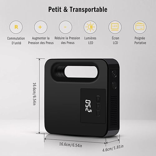 Compressore Portatile per Auto, Compressore Aria 12V con Luce a LED, Max. 150PSI / 10,3bar, per Gonfiare Le Gomme Delle Moto e Delle Auto, Palloni, Canotti Ecc