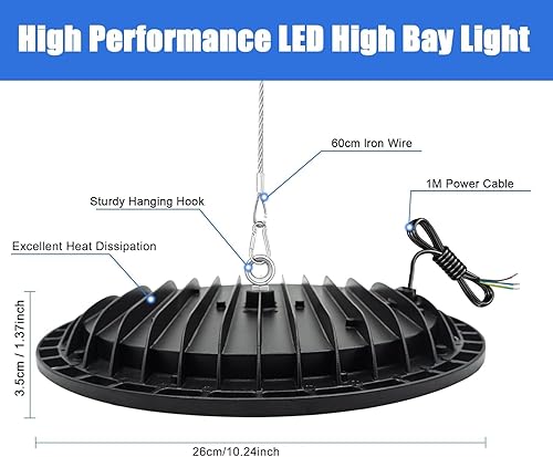 Faretto LED UFO 100W, 10000LM Luce per Negozio Super Luminosa da 6500K UFO Lampada da Officina Industriale, Impermeabile IP65 UFO Plafoniera LED per per Garage Capannoni Fabbrica Piazza