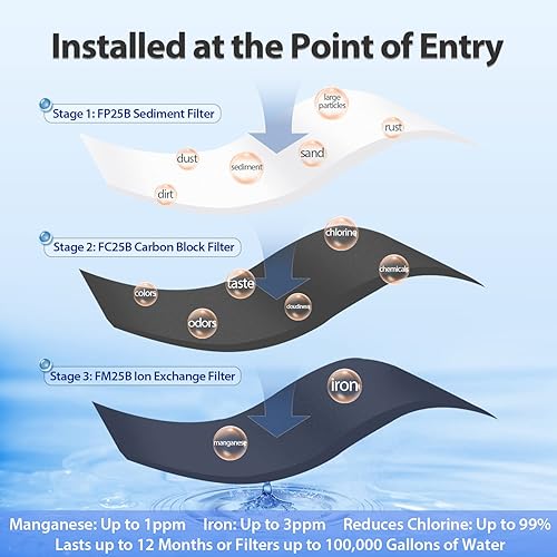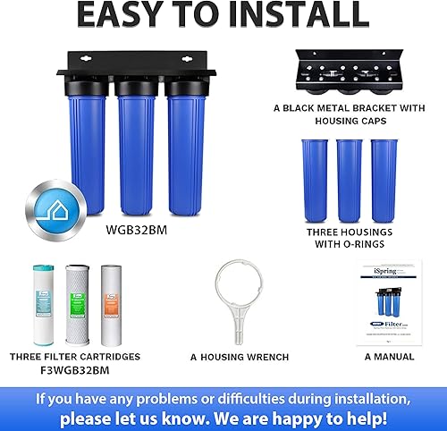 iSpring WGB32BM Sistema di Filtraggio dell'Acqua per Tutta la Casa con Riduzione dei Sedimenti, del Carbonio e del Ferro e del Manganese, Filtro in Ferro a 3 Stadi