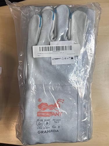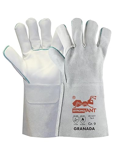 strongAnt GRANADA-Guanti da saldatura in pelle bovina guanti da lavoro adatti anche per grigliare guanti di sicurezza - TÜV GS - Grigio - Taglia: 9