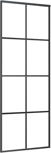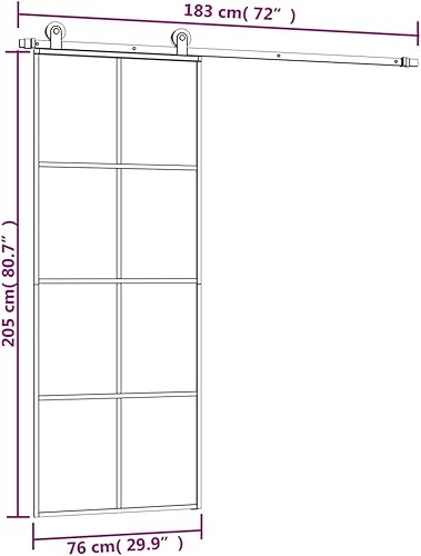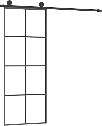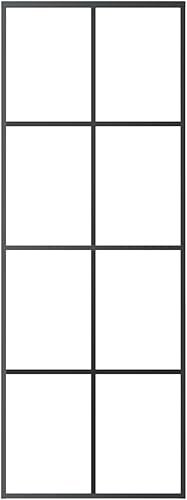 Porta,Scorrevole,con Set Binario,con Ferramenta,in Vetro ESG e Alluminio,Nero e Trasparete,76x205 cm,3 Barre Orizzontali,Set Porte Sorrevoli con Kit Binario,Porta Scorrevole in Vetro