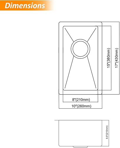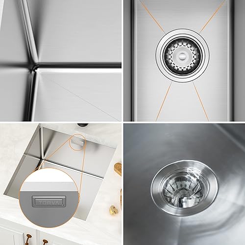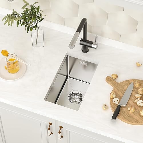 TORVA Lavello da Cucina in Acciaio Inox, Lavello Piccolo da Incasso, Lavello Rettangolare da Bar, Ciotola Singola, 26 x 43 x 21,5 cm