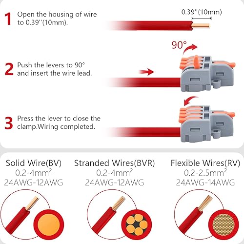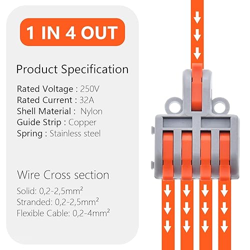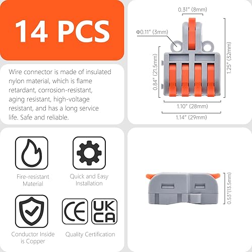 14 Pezzi Morsettiere Elettriche, 1 Filo 4 Entrate Connettori Elettrici Compatto Con Leva, Combinazione Gratuita Di Terminali, [0,2-4mm²]