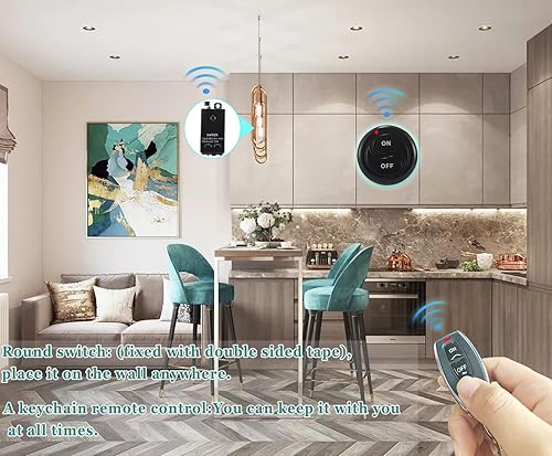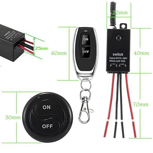 interruttore telecomandato 12V, 5V/12V/48V/10A Interruttore remoto a relè per luci, 328FT a lungo raggio per plafoniere, lampade.