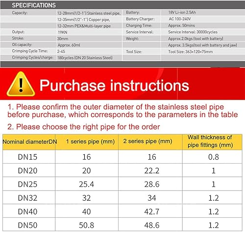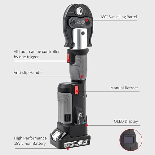 Strumento di Pressatura per Tubi Idraulici a Batteria Portatile per Crimpatura Multistrato in Rame Pex per Impianti Idraulici, con 3 Ganasce a Pressare/2 Batterie,1series
