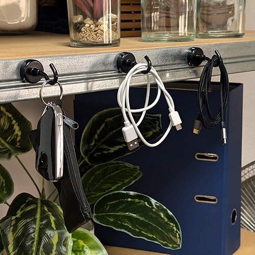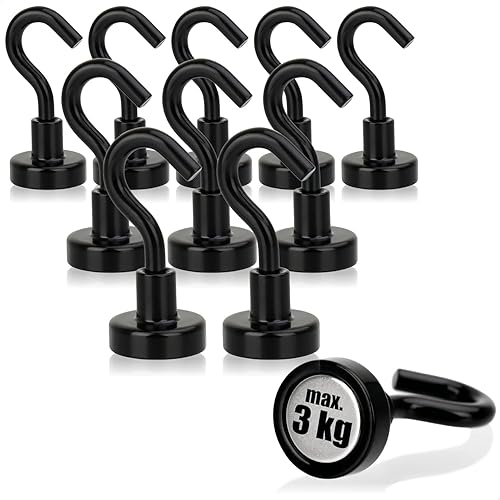com-four® 10 Ganci magnetici al neodimio da 3 kg - Potente Magnete da Officina con Gancio 38 x 15 mm - per Cucina, Bagno, Garage o Ufficio - Gancio Appendiabiti con Magnete al neodimio