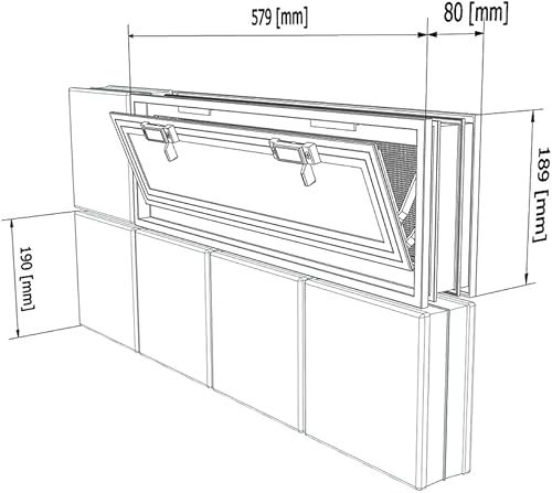 Fuchs Design Finestra di ventilazione (579x189x80 mm) grigio ghiaia al posto di 3 blocchi di vetro dimensioni 19x19x8 cm - con zanzariera