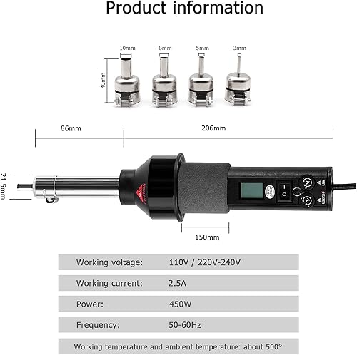 Pistola Ad Aria Calda Portatile 450W, Temperatura + Flusso D'Aria Display Digitale Regolabile Saldatura Dissaldante Soffiatore D'Aria Calda, per Saldatura Ic Smd Bga Termica, Guaina Termoretraibile