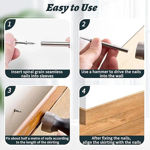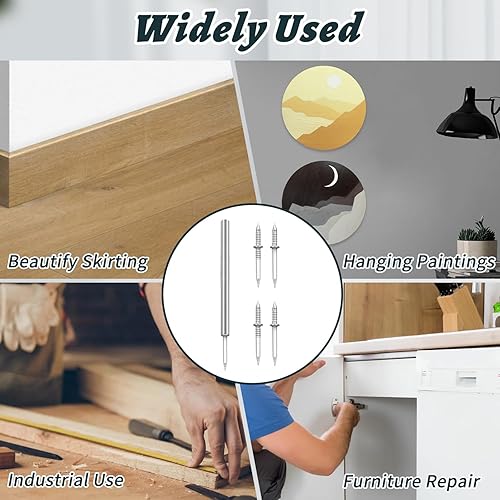 150 pezzi di chiodi per battiscopa a doppia testa, chiodi senza saldatura per battiscopa a doppia testa, chiodi senza traccia a doppia testa per mobili in legno con 2 utensili a manicotto