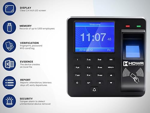 CTR10 Macchina di Registrazione, Sistema Avanzato di Rilevazione delle Presenze - Biometrico, RFID, Verifica con Password - 1000 Dipendenti, Controllo degli Accessi