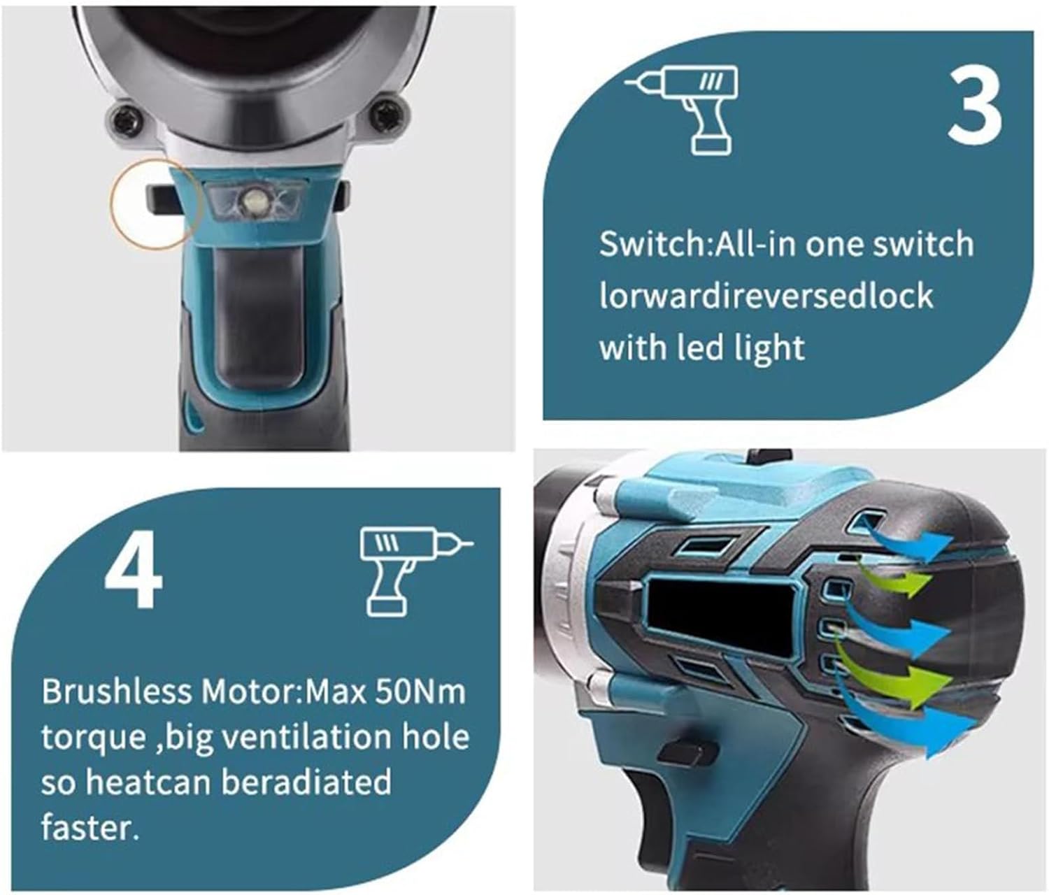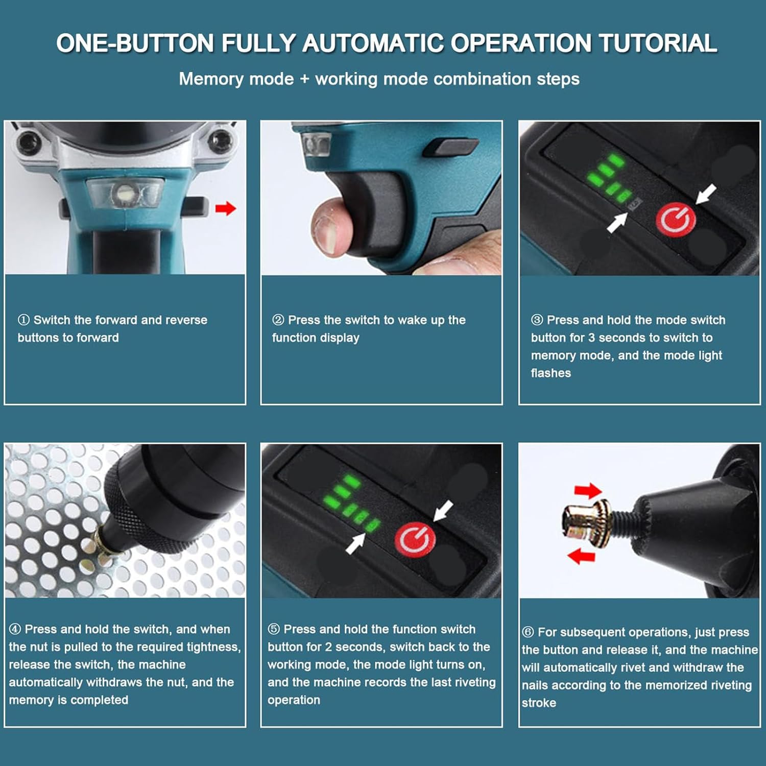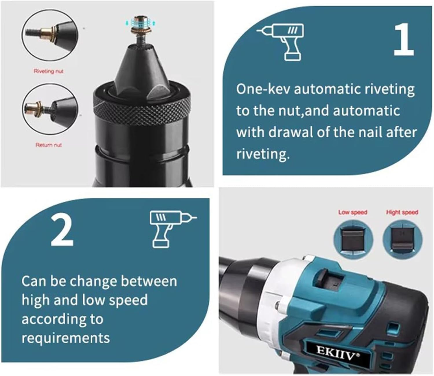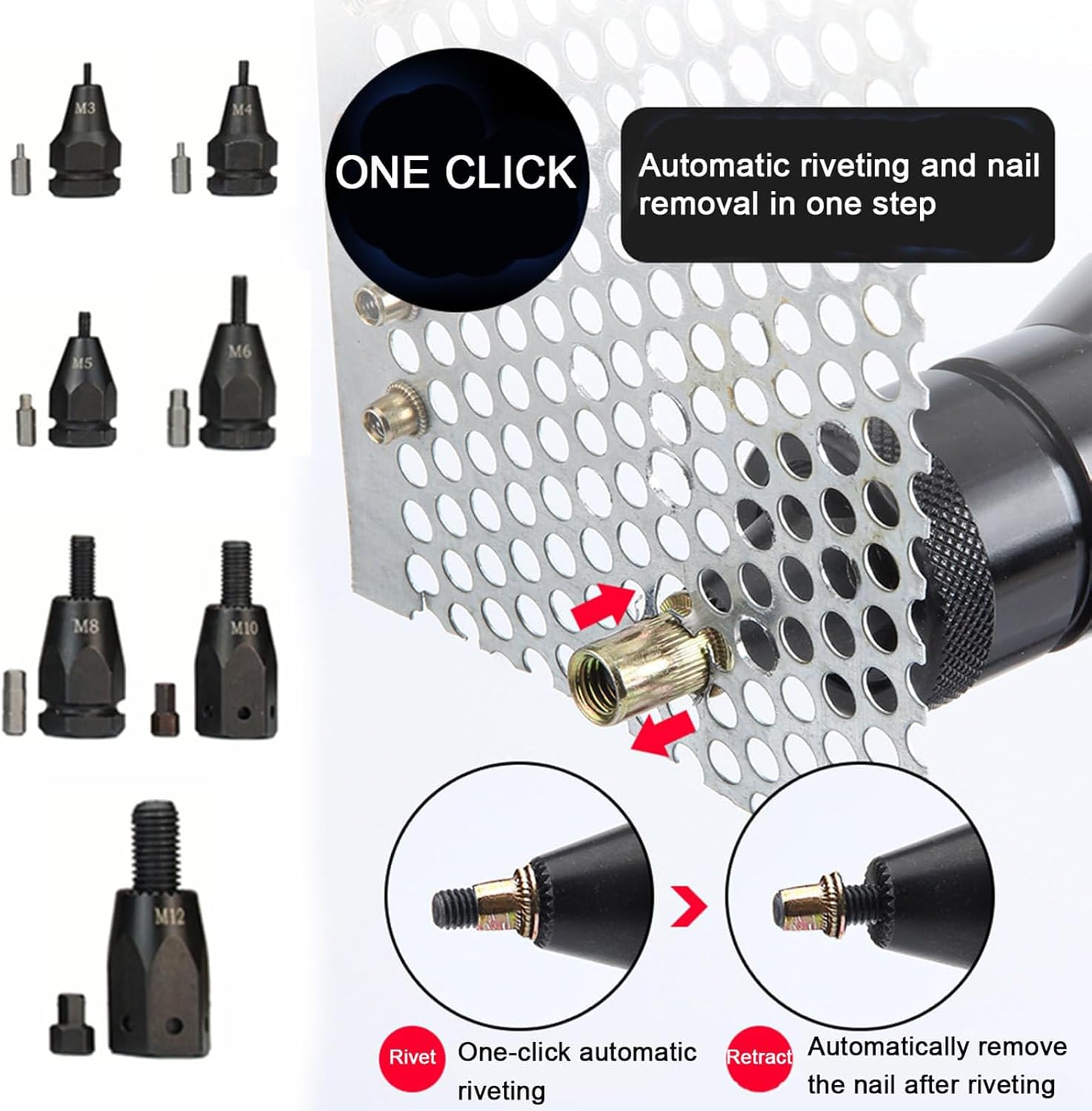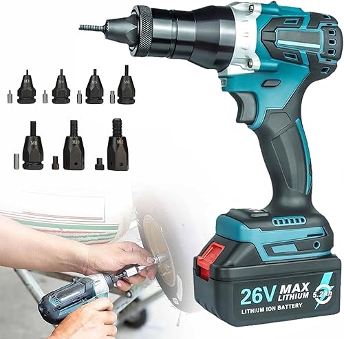 Set di pistola elettrica senza fili, pistola rivettatrice automatica portatile, kit professionale con batteria da 5200 mAh e custodia per il trasporto per dadi M3/M4/M5/M6/M8/M10/M12