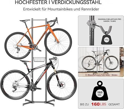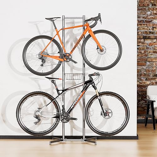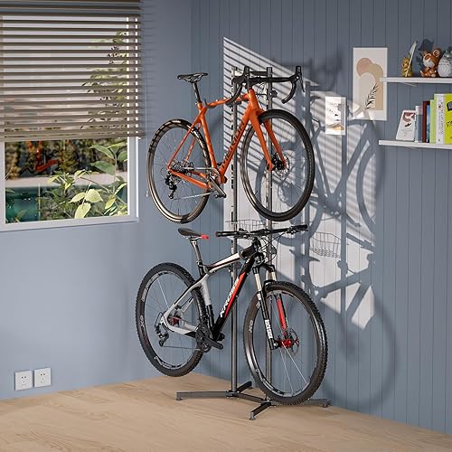 CXWXC Supporto per 2 biciclette,portabici da terra, portata fino a 50 kg/110 pound per bicicletta, per interni ed esterni