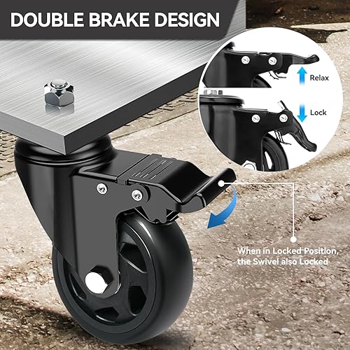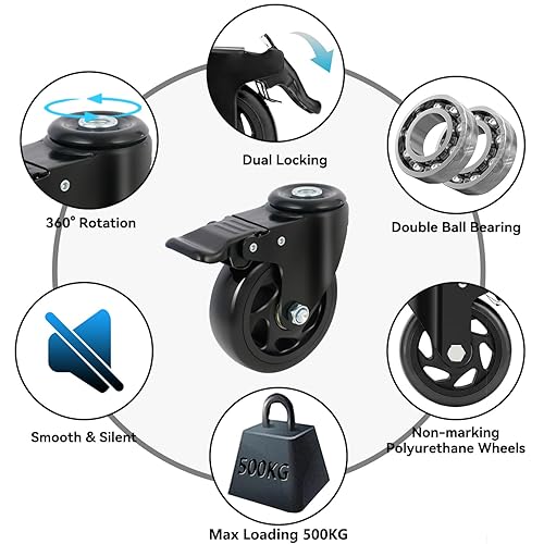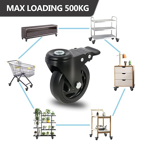 Rotelle per Mobili con Freno, Ruote Girevoli da 100mm con Foro Posteriore M12, Ruote per Il Trasporto, Ruote per Carrello Rotazione di 360 Gradi, Set da 4 Ruote per Mobili Portata 500 Kg