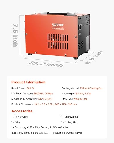 VEVOR Compressore d'Aria PCP, Compressore per Fucile ad Aria Compressa PCP 30 MPa con Convertitore Integrato e Sistema di Raffreddamento a Ventola Integrato, Bombole di Paintball con Arresto Manuale