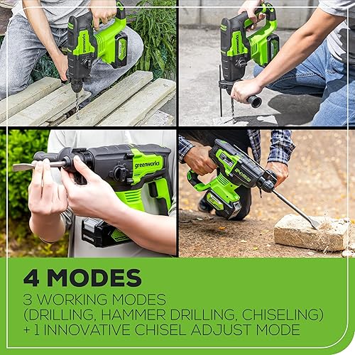 Greenworks Martello perforatore da 24 V 2J e avvitatore a percussione da 300 Nm, con batteria da 4 Ah e caricabatterie