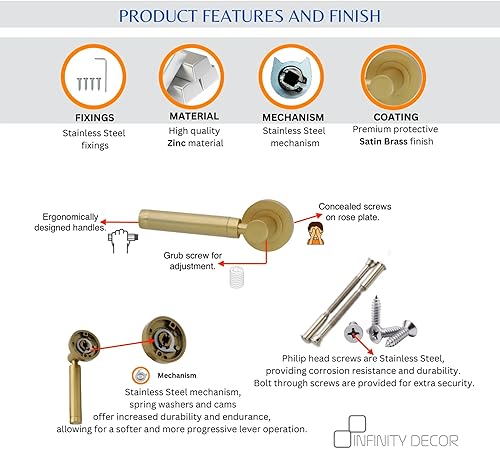 Infinity Decor Zishan - Set di maniglie a leva su rosetta, in ottone satinato e zinco, per porte interne