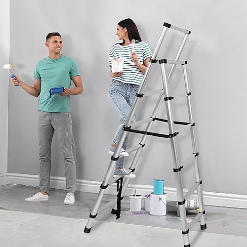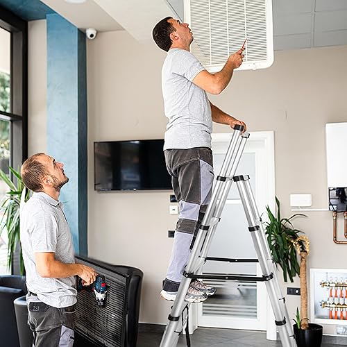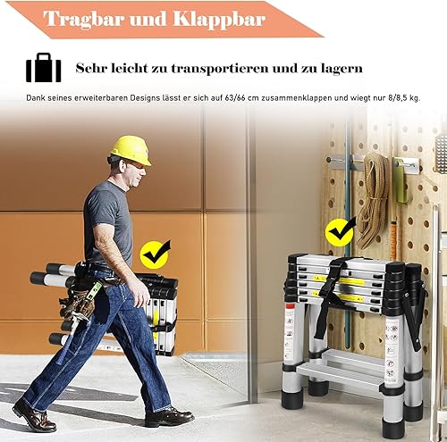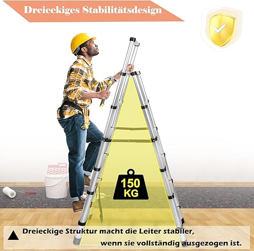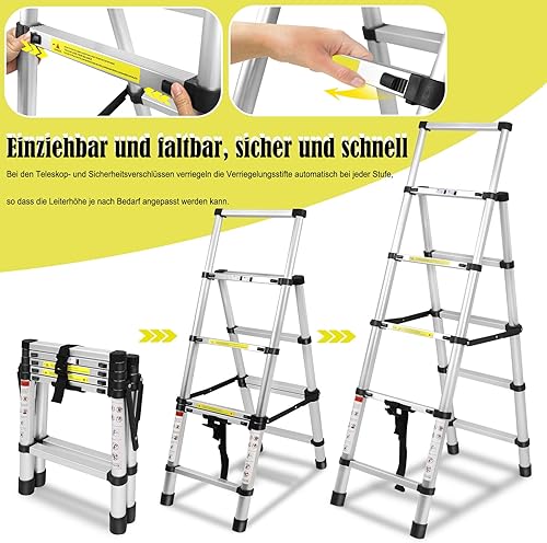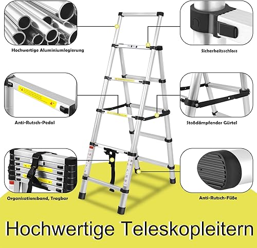 Scala telescopica 1,7 m + 2 m, telaio ad A, 6 + 7 gradini, in alluminio, antiscivolo, scala a pioli, design telescopico, portata massima 150 kg
