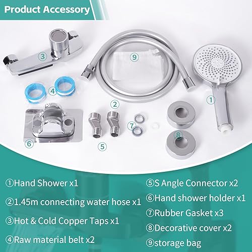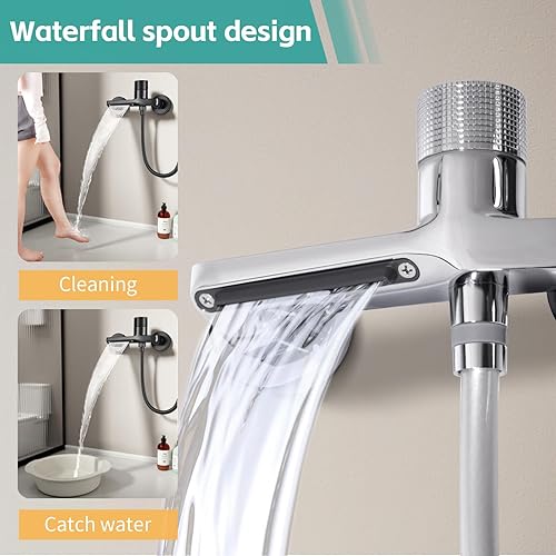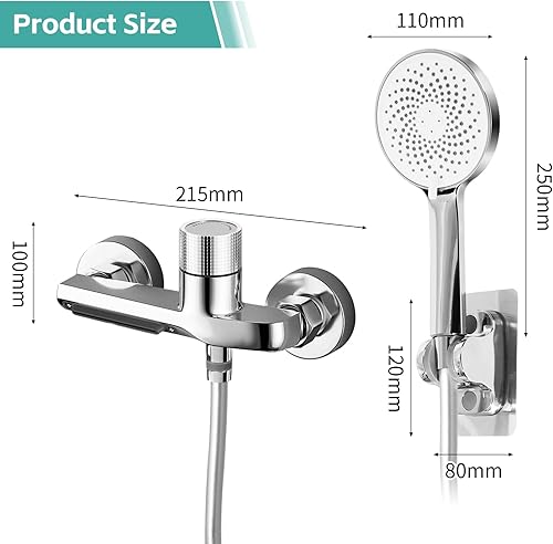 Dnkelar Rubinetto per vasca da bagno, rubinetto per vasca da bagno, rubinetto per vasca da bagno, rubinetto con doccetta manuale, tubo e supporto da parete (argento)
