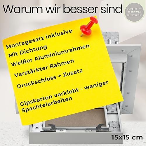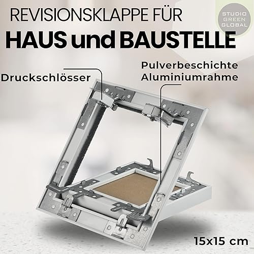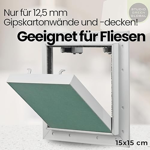 Botola d'Ispezione 150 x 150 mm senza spatole - Sportello d'ispezione 15 x 15 cm | pronto per la pittura | in cartongesso da 12,5 mm | con telaio in alluminio | adatto per ambienti umidi | verde