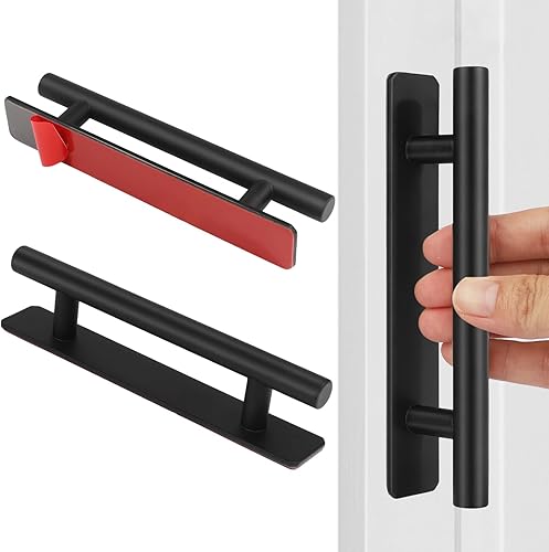 SSYR&P Set di 2 maniglie adesive per mobili, maniglie in acciaio inossidabile, per mobili da cucina, bagni, cassetti, armadi, ante, armadietti, garage, capannoni, fienili,150 x 25 mm,(nero)