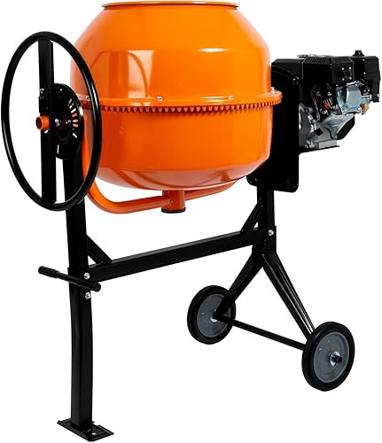 160L Betoniera mobile a benzina, motore a benzina da 6,5 CV, 4 tempi, telaio, tamburo e corona dentata in acciaio, volante bloccabile, ampia pedana, betoniera professionale, tamburo girevole