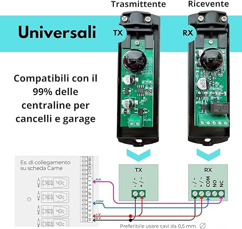 Coppia di Fotocellule a Infrarossi Universali per Cancello Garage Sensore Esterno porta Automatica 12V / 24V AC DC