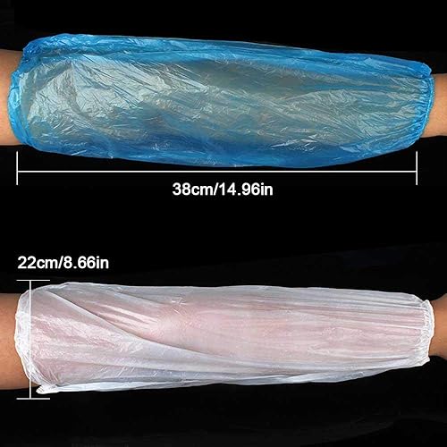 Aolvo Manicotti usa e getta in polipropilene, 100 pezzi, lunghezza 38 cm, copri-maniche, polsino elasticizzato, impermeabili, da usare durante pittura, riparazioni, pulizie, tatuaggi, unisex Blue