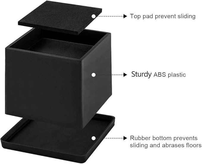 Rialzo Letto Alzar Letto Rialzi per Mobili Tavolo, Aggiungere 5,1 CM in Altezza (4 pezzi, nero)