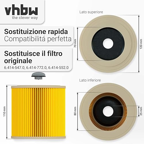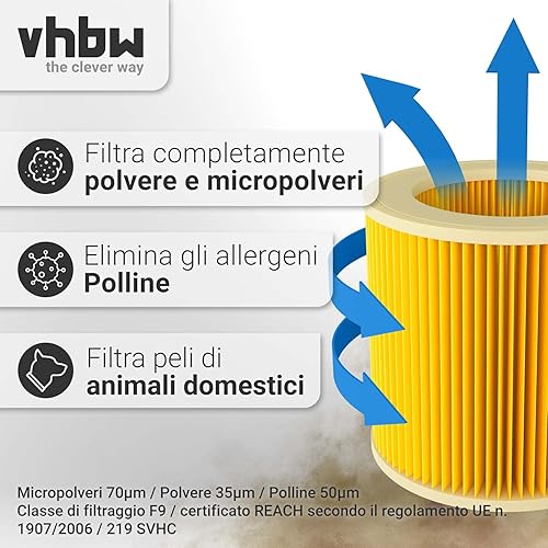 10x filtro a pieghe piatte compatibile con Kärcher NT 20/1 Me Classic E, NT 27/1 ADV, NT27/1, NT 20/1 Me Classic aspirapolvere - giallo