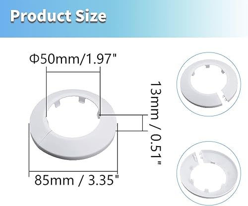 MroMax Adatto a 4,8 cm Diametro Esterno Flangia Tubo Acqua Copertura Decorazione Bianco Radiatore Plastica PP 50 mm Rosetta Collare per Parete 1 Pz