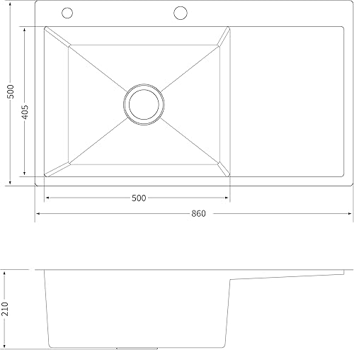 86 x 50 x 21, lavello da cucina, acciaio inox 304, spessore del materiale: 0,8 mm, lavello, lavello, lavello da incasso, rettangolare, 1 vasca, troppopieno, scolapiatti, nero