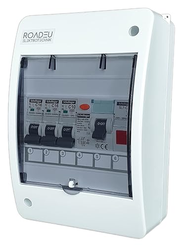RoadEu - Centralino e quadri di distribuzione da parete – completo di indicatore luminoso a LED– Interruttore Differenziale 40A – 16A Interruttore Magnetotermico C10A