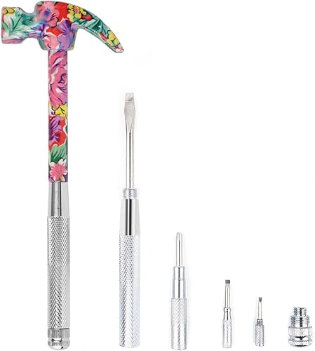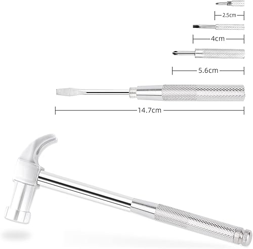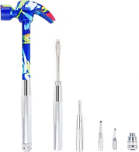 6 in 1 Hammer & Screwdriver Tool Multitool Set Claw Hammer con impugnatura antiscivolo Slotted/Flat Head Phillips Screwdriver Nail Puller Miglior regalo per amici di famiglia colleghi (giallo)