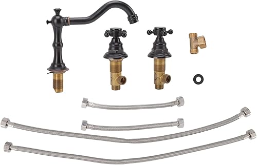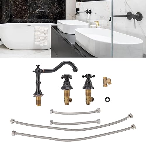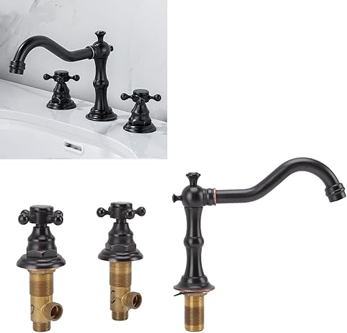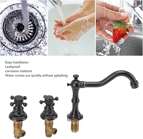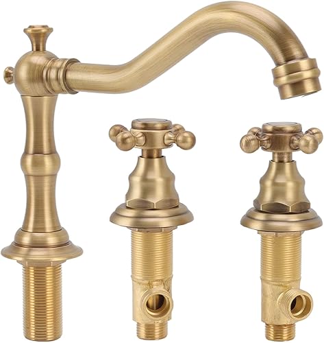Rubinetto da Bagno Filettato G1/2, Lavabo a Tenuta Stagna in Ottone a 3 Fori e Due Maniglie Con Erogazione Rapida Dell'acqua, Ideale per Vanità (Colore Antico)