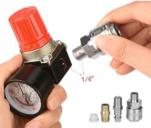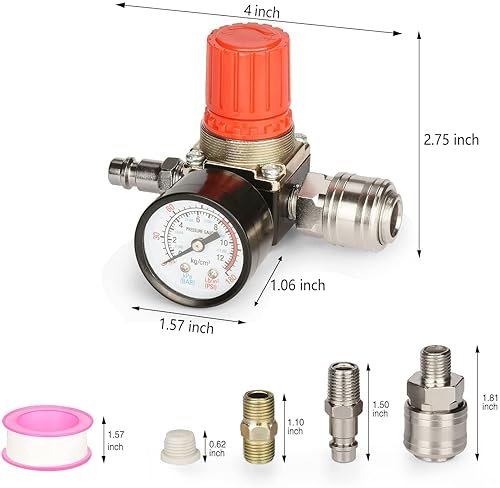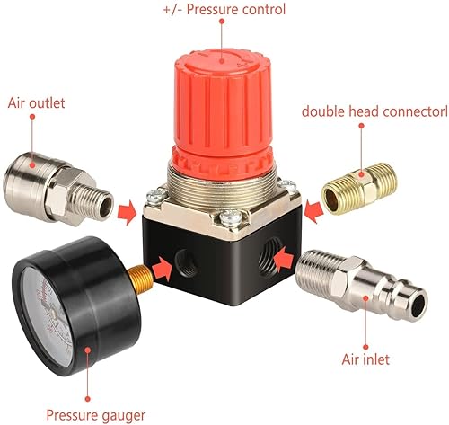 Regolatore di pressione da 1/4' Interruttore del compressore d'aria Riduttore di pressione a 4 fori- Regolatore di pressione dell'aria compressa con manometro