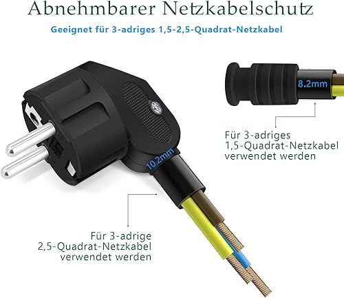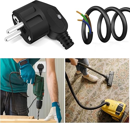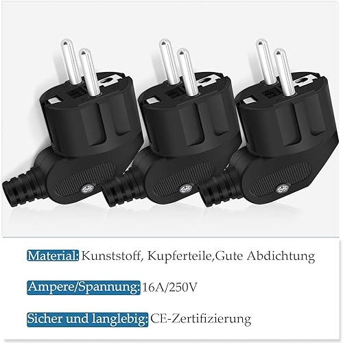 Spina Schuko, spina 250 V, spina di alimentazione con scarico della trazione, spina con contatto di protezione con manicotto antipiega, resistente agli spruzzi d'acqua e durevole, IP20, infrangibile