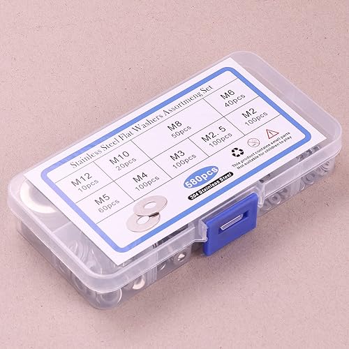Rantecks 580PCS Set di rondelle assortimento acciaio inossidabile 304 rondelle piatte di tenuta M2-M12