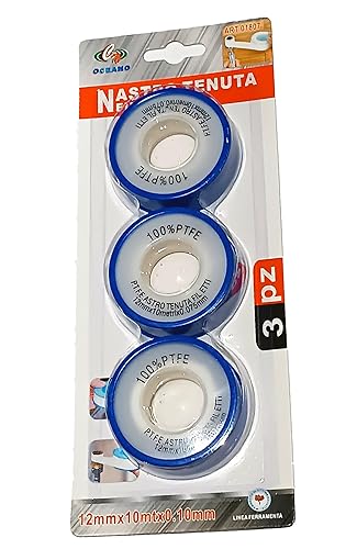 Nastro Sigilante per tubi idraulico, 3 pezzi -Teflon Idraulico In PTFE per Tubi, Rubinetti, Valvole, 12mm x 0.1mm x 10mt
