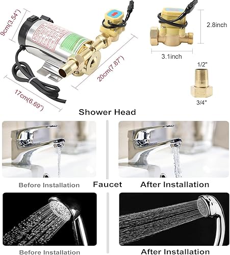 ECUTEE Pompa Automatica Booster Acqua 100W, Pompa di Circolazione Pompa dell'Acqua Calda Booster con Interruttore Automatico Flusso d'Acqua, Pompa di Pressione per Doccia Domestico, 16L/Min