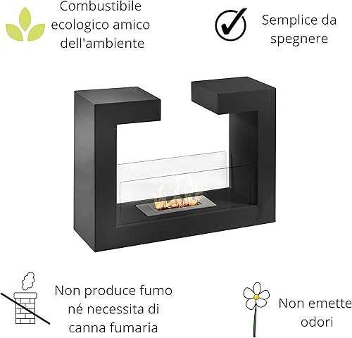 Camino a Bioetanolo MAGNOR | Biocamino da Terra Bifacciale | Stufa a Bioetanolo | Dimensioni 78x25x58h cm | Potenza: 3,68 kw/h (Nero)