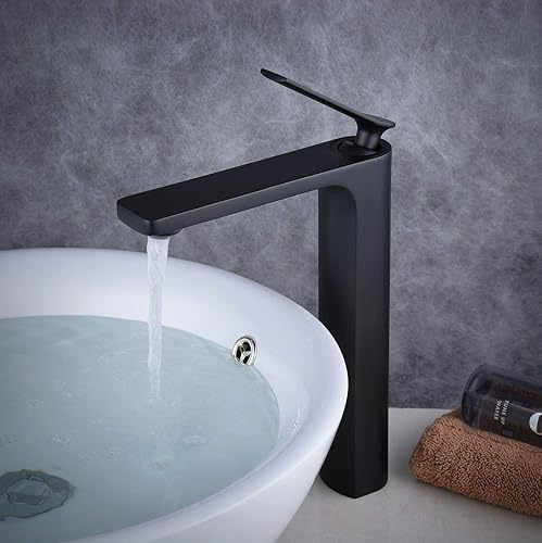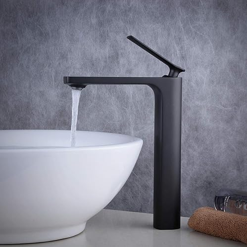 Rubinetto Lavabo Bagno Alto Monocomando per Lavabo Acqua Calda e Fredda Regolabile Rubinetto, Pittura nera
