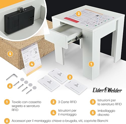 Elder Welder® Tavolo con Scomparto Segreto e Serratura RFID | Ideale per Casa e Ufficio | Cassaforte Invisibile con Cassetto Segreto | Cassaforte Nascosta | Nascondiglio Segreto per Soldi e Oggetti