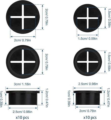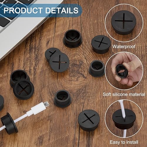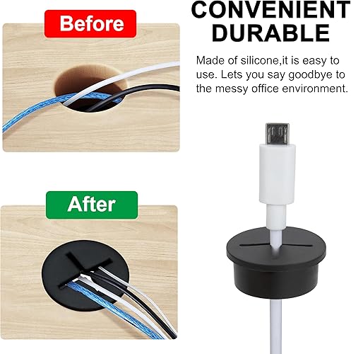 Passacavo Silicone Flessibile Passacavi Occhielli Cavi ordinati per Office Home Piano di lavoro Ø 20 mm + Ø 25 mm 20 Pezzi in Totale, Nero
