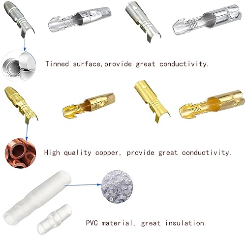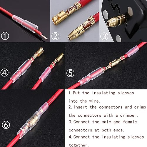 Connettori a Proiettile Kit, 360PCS 3,9mm Bullet Oro Ottone Terminali Filo Maschio e Femmina Bullet Connector Terminali a Crimpare Doppi con Coperchio Isolante per Moto Auto Strumenti elettrici