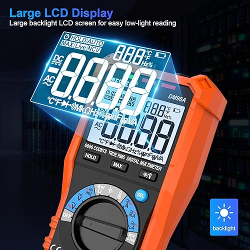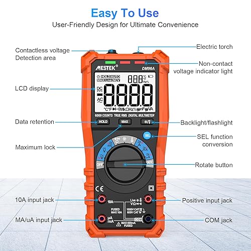Multimetro Digitale MESTEK AC/DC Tensione Corrente 6000 Conta Autoranging TRMS per Amp Volt Ohm Hz Resistenza Continuità Diodi Frequenza Capacità Temperatura NCV Portatile Elettricista Tester
