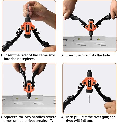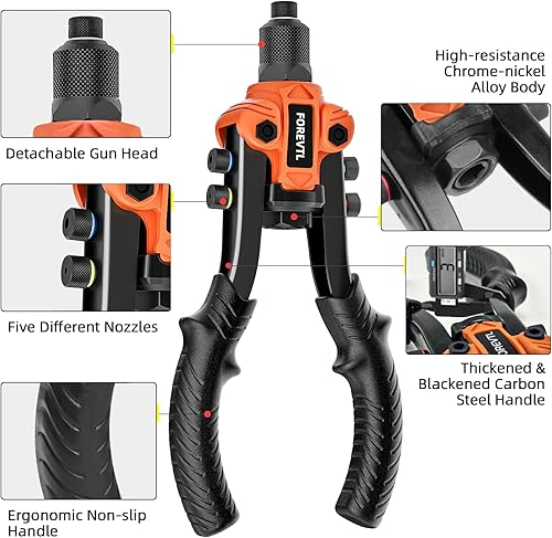 Set di pinze per rivetti da 10' con 200 rivetti per rivetti ciechi con rivetti ciechi da 6,4 mm a 2,4 mm, 5 bocchini intercambiabili, pistola rivettatrice professionale, set di pinze per