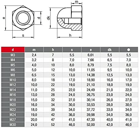 Dadi a cupola esagonale in acciaio 316 di tipo alto DIN 1587