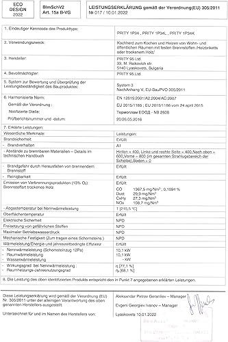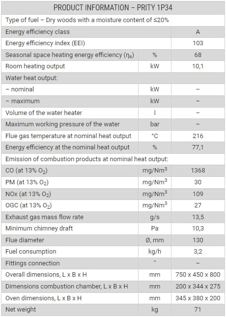 Stufa a legna per combustibile solido, potenza di riscaldamento 10 kW. Forno